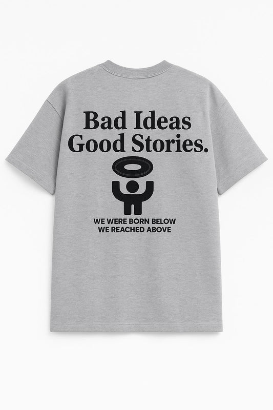 T-shirt Oversize Gris – “Bad Ideas Make Good Stories”